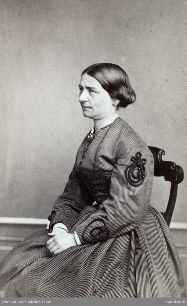 Derfor måtte hun gå med paraply når hun var ute og gikk, for å ha noe å forsvare seg med overfor særlig guttegjenger som plaget henne. Hun stakk seg ut i Norge, og slikt gjør man jo ikke ustraffet. Nå, på trygg avstand, kan vi feire det. Vi kan arrangere utstillinger og holde omvisning.