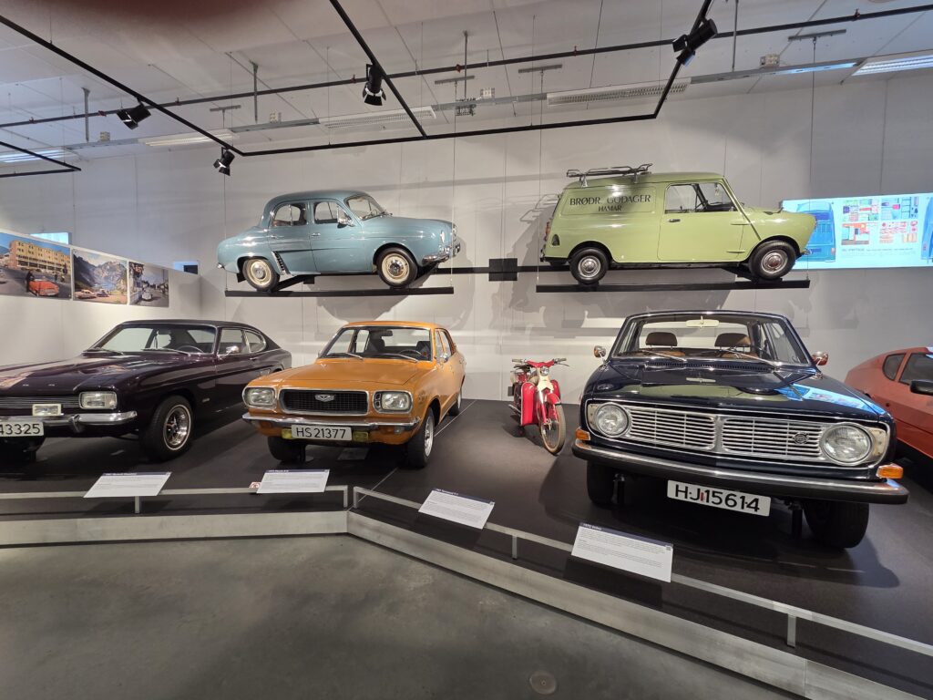 Alle er enige om at denne bilen kunne ha glidd inn i bilparken i dag. Mellom disse har vi storslåtte biler, mer vanlige biler, mopeder, en vegg full av sykler og selvsagt folkevognbussen. Flere av disse kjøretøyene byr på minner for mange. «Jeg har kjørt en sånn en», sier en av dem i gruppen når vi kommer til en bil hvor alt er originalt, og kilometerstanden står på kun 29. «Min far hadde en sånn som sin første bil.» Det er en Moskvitch, og vår guide forteller om frislipp av biler i 1960, man trengte ikke lenger å søke, og vi får en liten historie om hvorfor den har gått så kort. Ekteparet som eide den, hadde hytte å dra til, men ikke lappen.