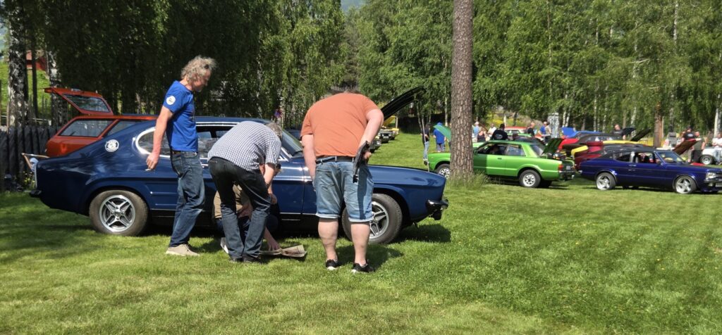 Dommerne heter Terje, Kent og Harald og beretter om skyhøyt nivå. Alle motorene ser splitter nye ut, enda det var slutt med å produsere Taunus i 1993. Alt er blitt plukket fra hverandre og rengjort slik, forteller eiere jeg snakker med. Det er stort sett menn her, men så treffer jeg på Veronica. Hun har en gul GT og, viser det seg, tilhører «høvdingfamilien» innen Ford Taunus.