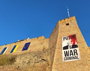 Hver 9. mai feirer Russland frigjøringsdagen etter andre verdenskrig, og ved Ivangorod-festningen markeres dagen med en stor konsert. Dette har museet i Narva valgt å gi et tydelig svar på: I 2023 og 2024 hengte de opp et stort banner på veggen som vender mot nabolandet, der de kalte Vladimir Putin en krigsforbryter. I år sammenlignet de Putin med Hitler – banneret viste en illustrasjon der ansiktene deres smelter sammen, under overskriften «Putler».