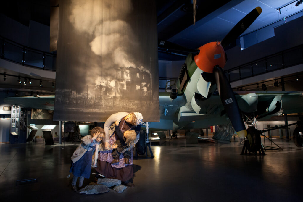 KRIG I GRENSELAND: Grenselandmuseet ble i sin tid etablert for å huse et sovjetisk jagerfly som styrtet under frigjøringskampene i oktober 1944. Camilla Carlsen har tenkt mye på at det første folk som har flyktet fra krig, ser i utstillingen, er dette jagerflyet. Foto: Knut Åserud / Grenselandmuseet