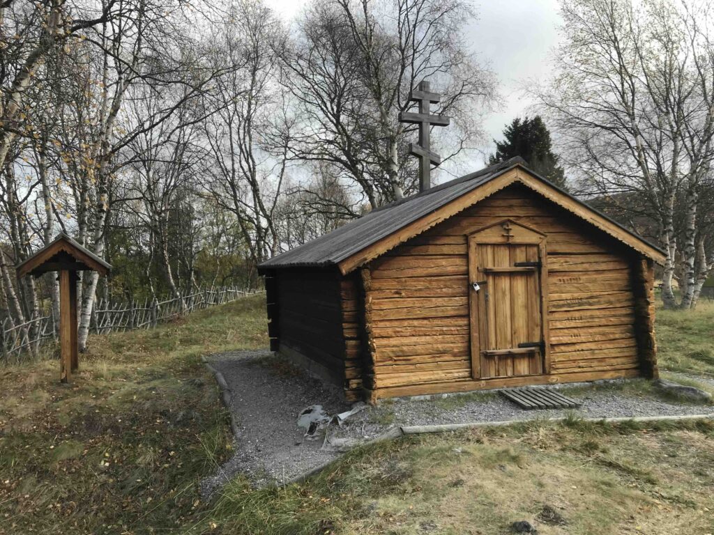 LANDETS MINSTE KYRKJEBYGG: St. Georgs kapell med sine ti kvadratmeter og det russisk-ortodokse korset på taket. Foto: Karina Solheim